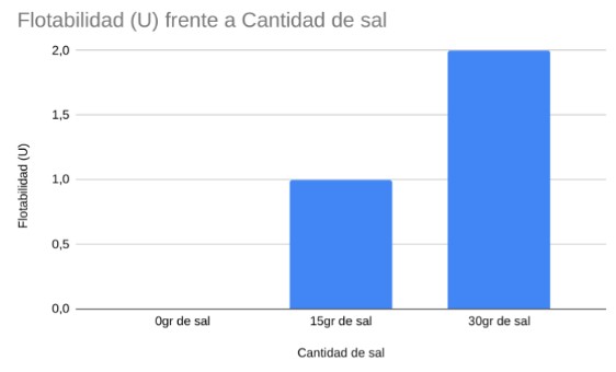 Nuestros datos demuestran que, a medida que aumentamos la cantidad de sal en el agua, la flotabilidad del huevo aumenta significativamente.