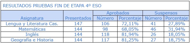 En estas pruebas se evalúan las materias de Lengua Castellana y Literatura, Matemáticas, Inglés y Geografía e Historia o Ciencias Sociales.